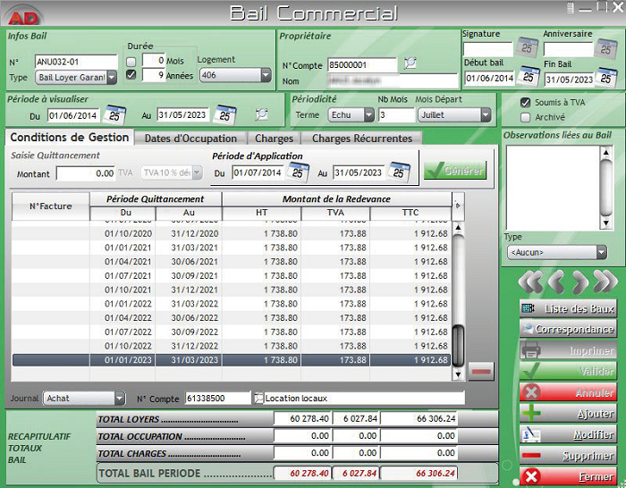 - Gérer la facturaturation en masse des baux par période